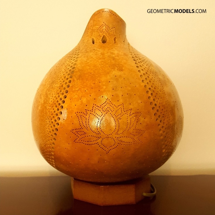 Merkaba and platonic solids gourd lamp – day time – side view