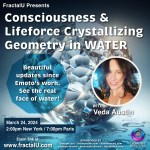 Consciousness & Lifeforce Crystalizing. Geometry in WATER – see, vedaaustin.com – we are so excited Veda will join us! (beautiful updates- since Emoto’s work- see the real face of water!)